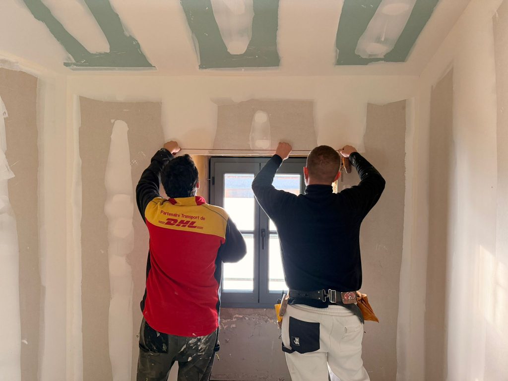Les travaux ont inclus la réalisation des bandes et des joints, avec un soin particulier apporté aux angles, aux encadrements de fenêtres et aux zones techniques. Chaque étape a été réalisée dans le respect des règles de l’art, afin de garantir un rendu propre et homogène, prêt à recevoir les finitions.