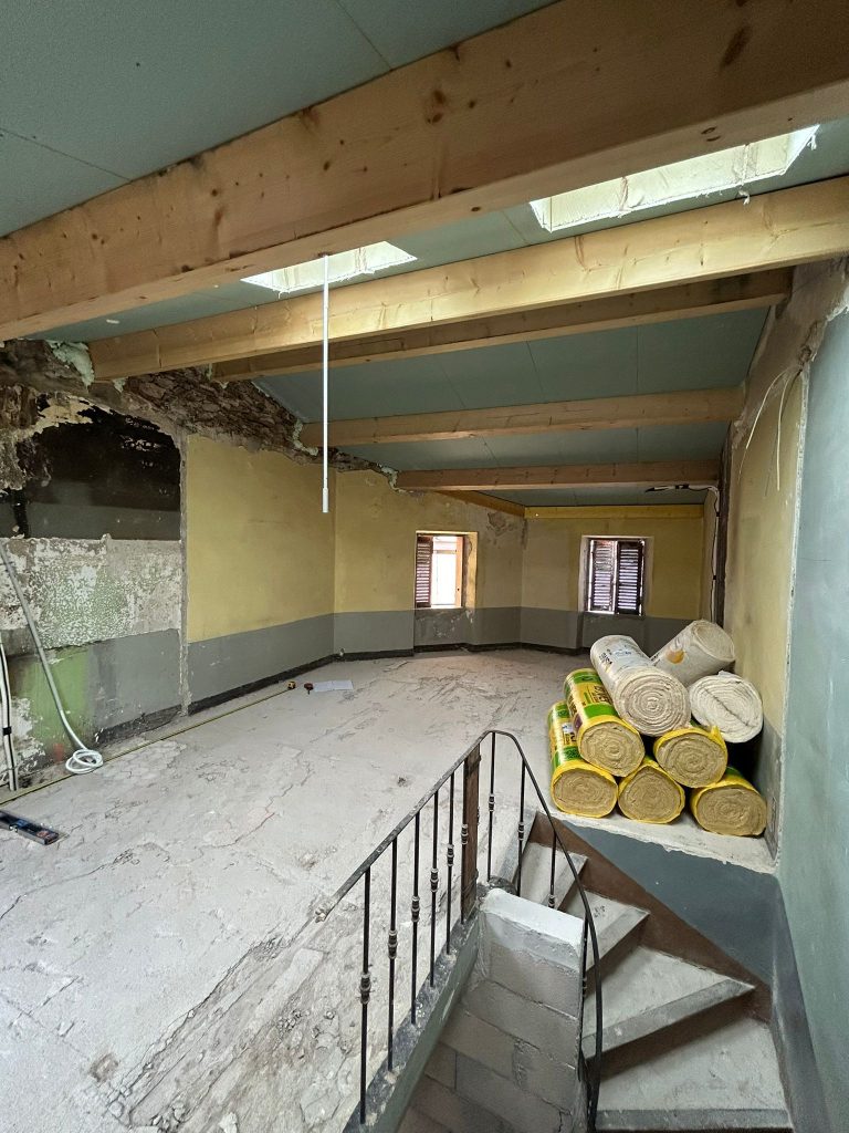 Avant travaux, les murs présentaient des supports irréguliers, des revêtements dégradés et une isolation inexistante ou insuffisante. La configuration des lieux, typique des bâtis anciens, nécessitait une intervention soignée afin de redresser les surfaces sans dénaturer les volumes et les ouvertures existantes.